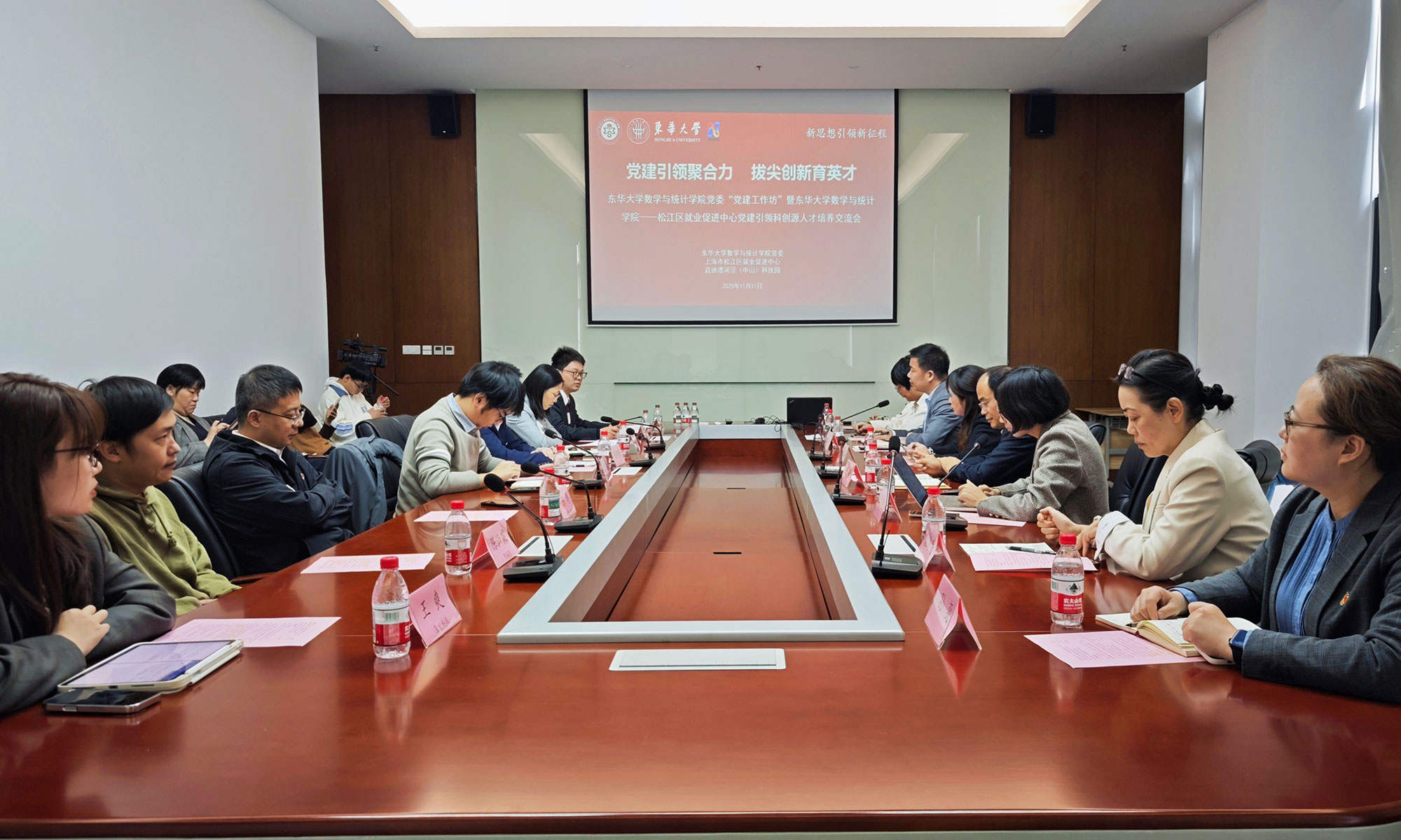 为深入贯彻落实党建引领事业发展要求,推动校地企三方在人才培养、就业合作、党建融合领域实现资源共享与协同发展,11月11日下午,数学与统计学院党委主办的“党建工作坊”暨东华大学数学与统计学院——松江区就业促进中心党建引领科创源人才培养交流会在启迪漕河泾科技园举行。东华大学机关党委书记兼组织部副部长叶晓燕、数学与统计学院党委书记谢峰、区人社局副局长马守亮、区就业促进中心主任殷华、启迪漕河泾科技园党总支书记李杨出席活动。活动由数学与统计学院党委副书记景亮主持。数学与统计学院党委班子成员、区就业促进中心党支部班子成员、科技园党支部代表及园区内科创企业负责人、学院师生代表共同参会,以党建为纽带搭建起校地企协同育人新平台。