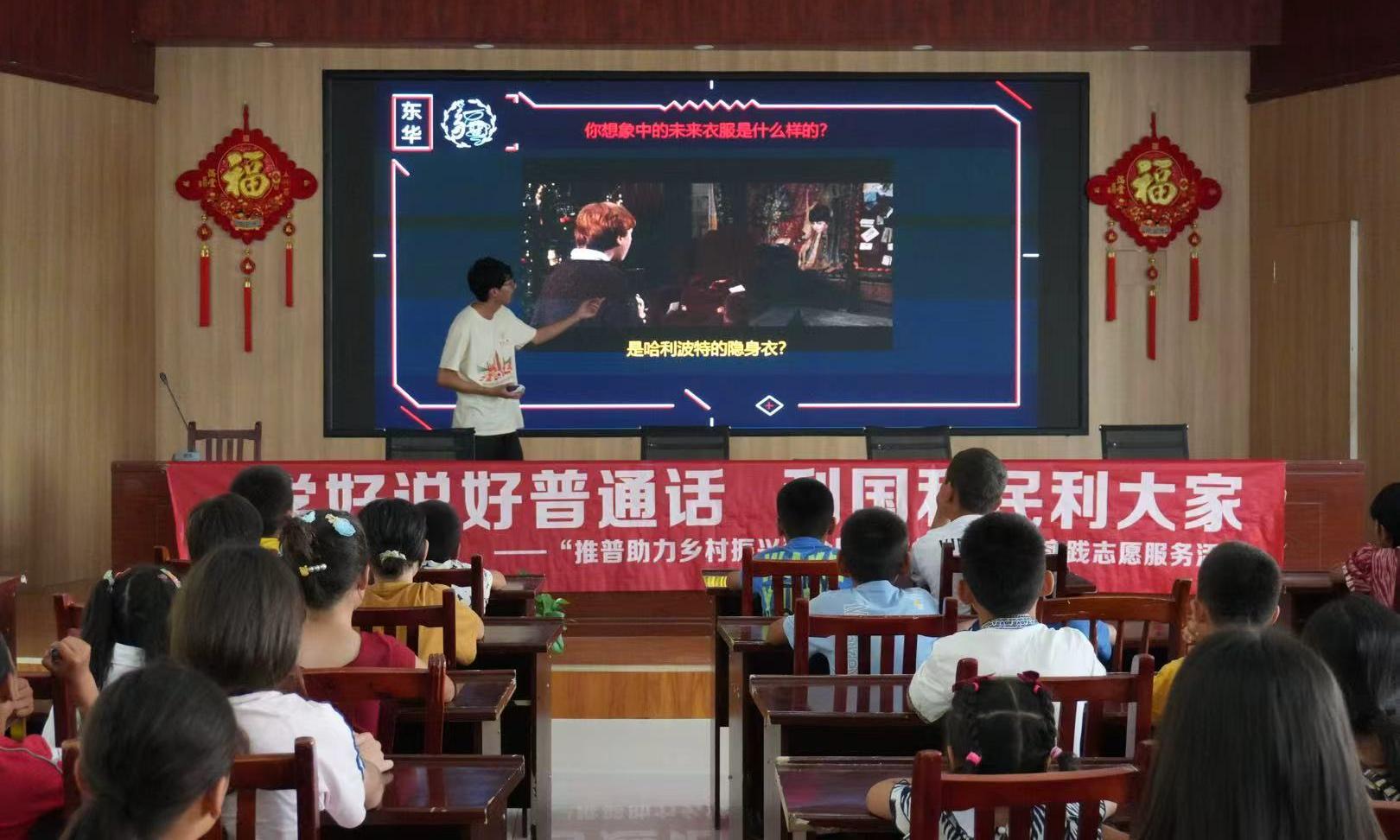 (师生实践团深入新疆社区推广普通话)