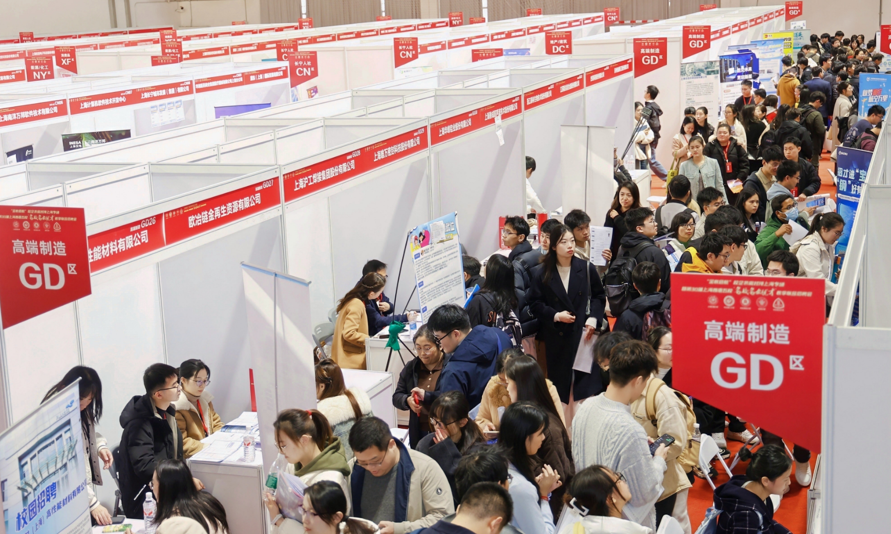 招聘会汇聚投身国家重点领域、基层一线和中小微企业的单位,展示“行行可建功、处处能立业”的就业理念。值得一提的是,招聘会同期举办“高校创新成果展”,搭建产教融合“直通车”,展示上海高校创新活力。东华大学作为联合承办方之一,发挥积极作用,为毕业生提供就业平台,促进学校与产业界交流合作。