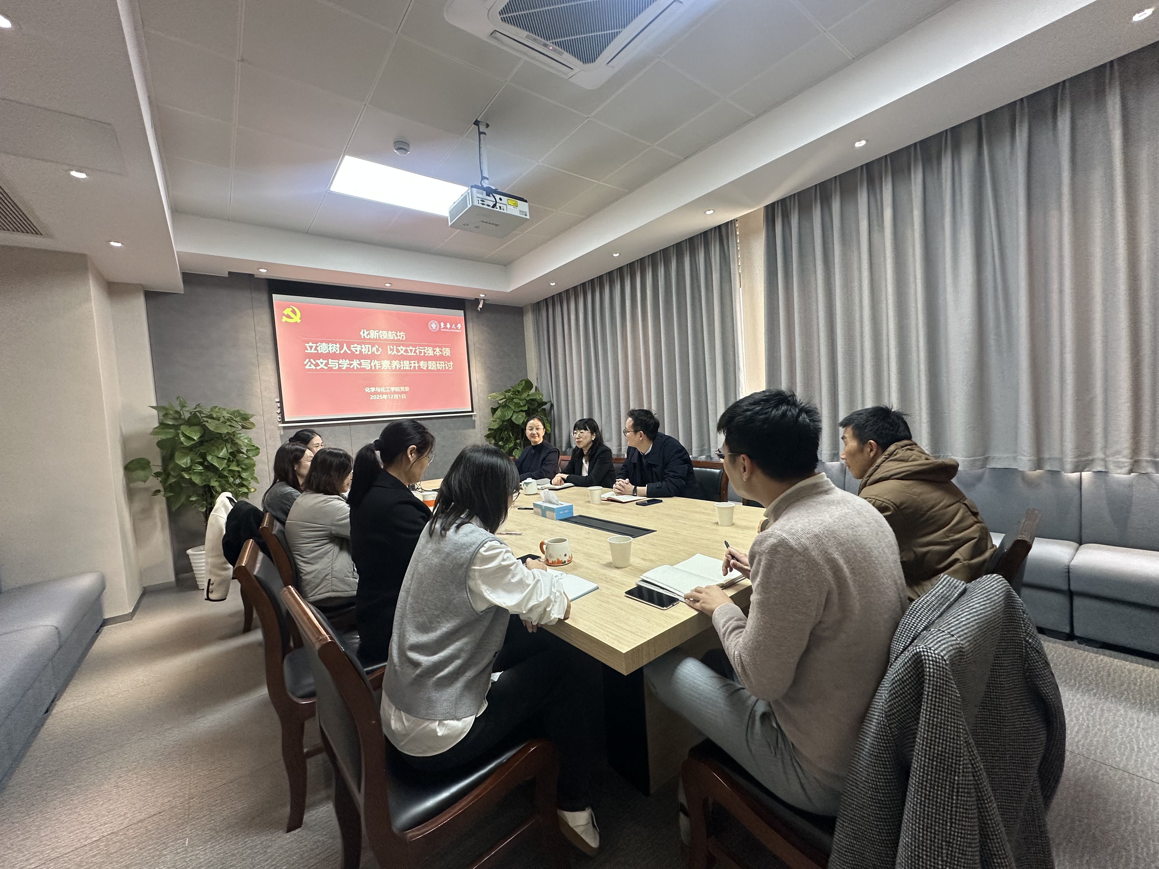 为锻造高素质专业化干部教师队伍,推动党建与业务深度融合,12月1日,化学与化工学院“化新领航”党建工作坊举办“立德树人守初心,以文立行强本领”公文与学术写作素养提升专题研讨会。人文社会科学处副处长刘余勤应邀主讲,学院党委书记严军、副书记刘云芸出席会议,学院办公室及学工办教师参加。