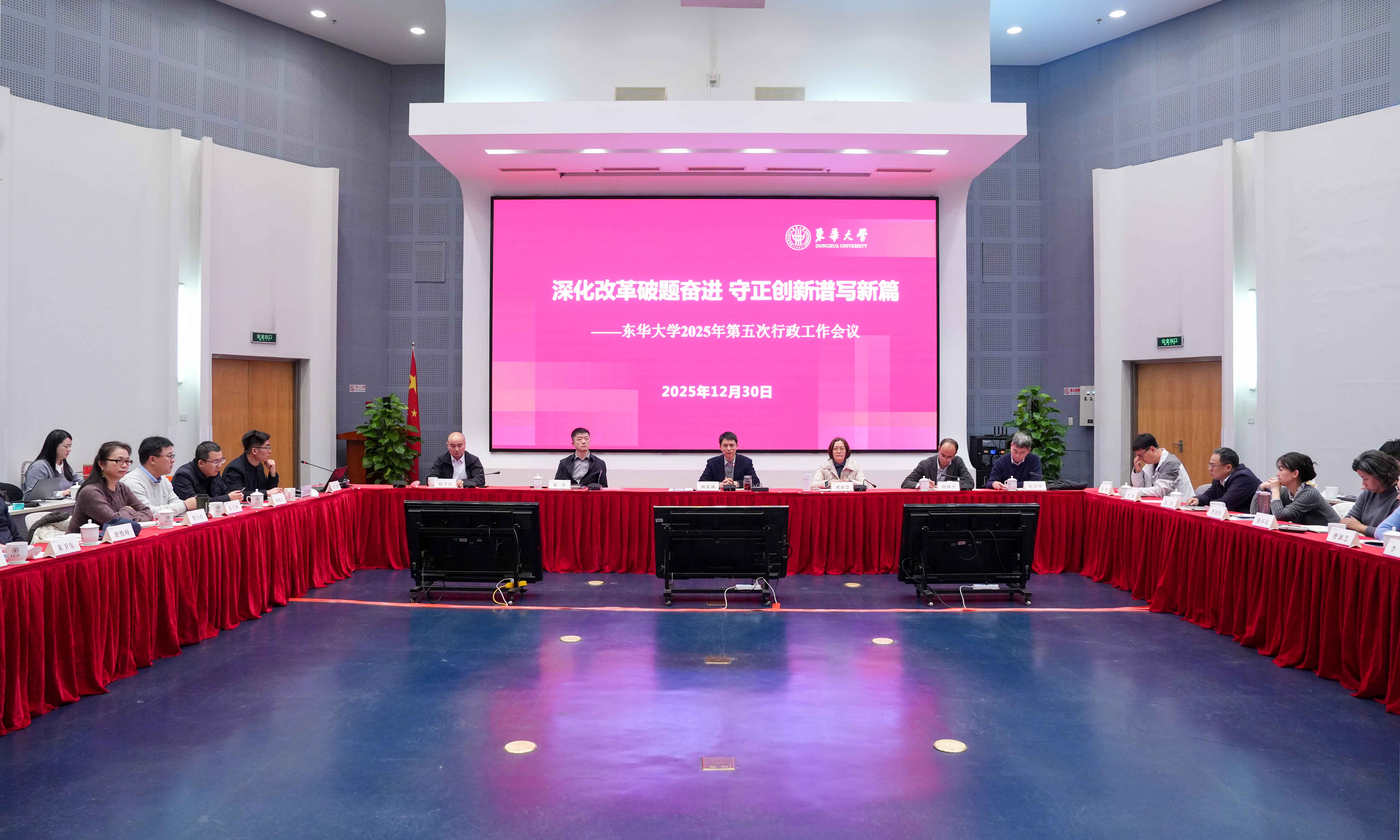 12月30日下午,2025年第五次行政工作会议在松江校区召开,会议以“深化改革破题奋进,守正创新谱写新篇”为主题。校长项延训主持会议并讲话,副校长刘淑慧、陈革、阎林平、陆卫兵、张清华出席会议。各学院、相关行政职能部处、直属单位主要负责人参加会议。