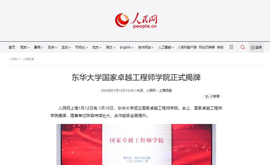 人民网上海1月12日电 1月10日,东华大学成立国家卓越工程师学院。会上,国家卓越工程师学院揭牌,理事单位阵容持续壮大、合作能级全面提升。
