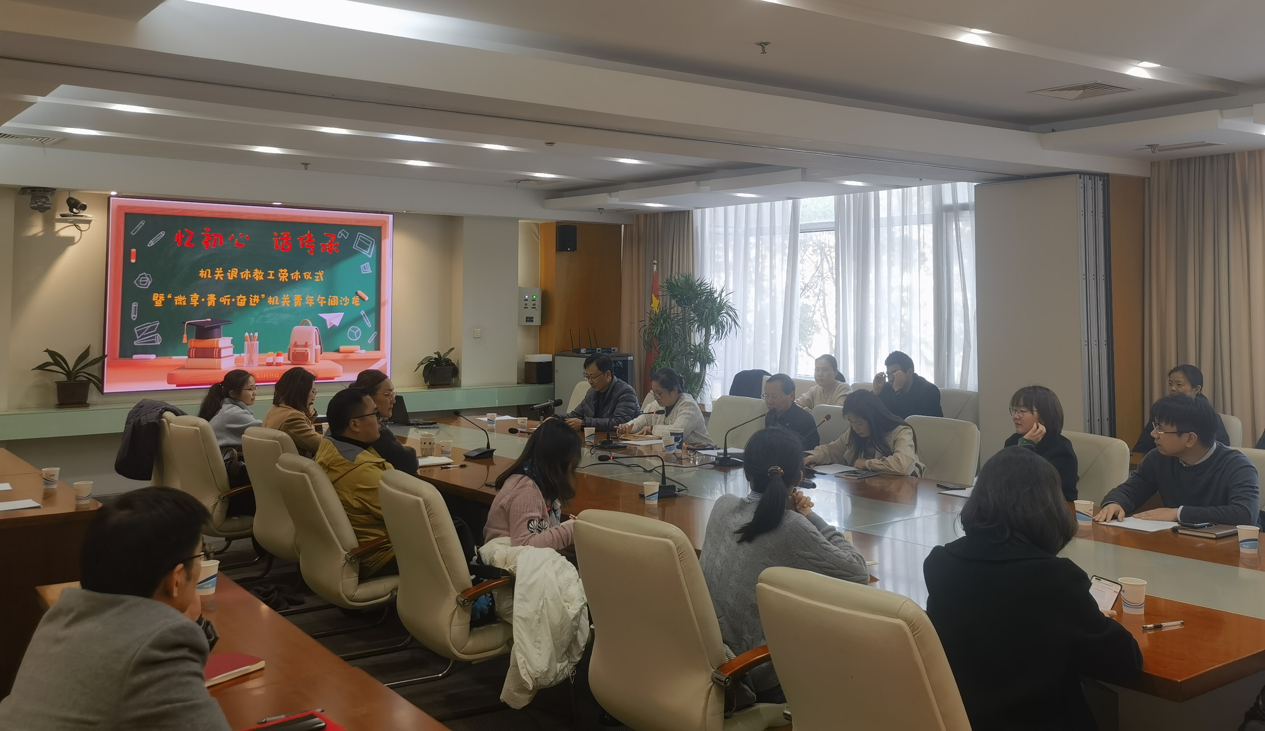 1月15日,由机关党委、机关工会主办的“忆初心 话传承”教职工荣休仪式暨“微享·青听·奋进”机关青年午间沙龙举行。活动以“温情致敬荣休,智慧启迪未来”为主题,期刊中心原主任、党支部书记王克斌应邀作专题分享。校工会、机关党委、机关工会、相关部处和学院代表,期刊中心全体人员,机关文明示范岗学员及青年代表等参加活动。活动由机关党委书记叶晓燕主持。