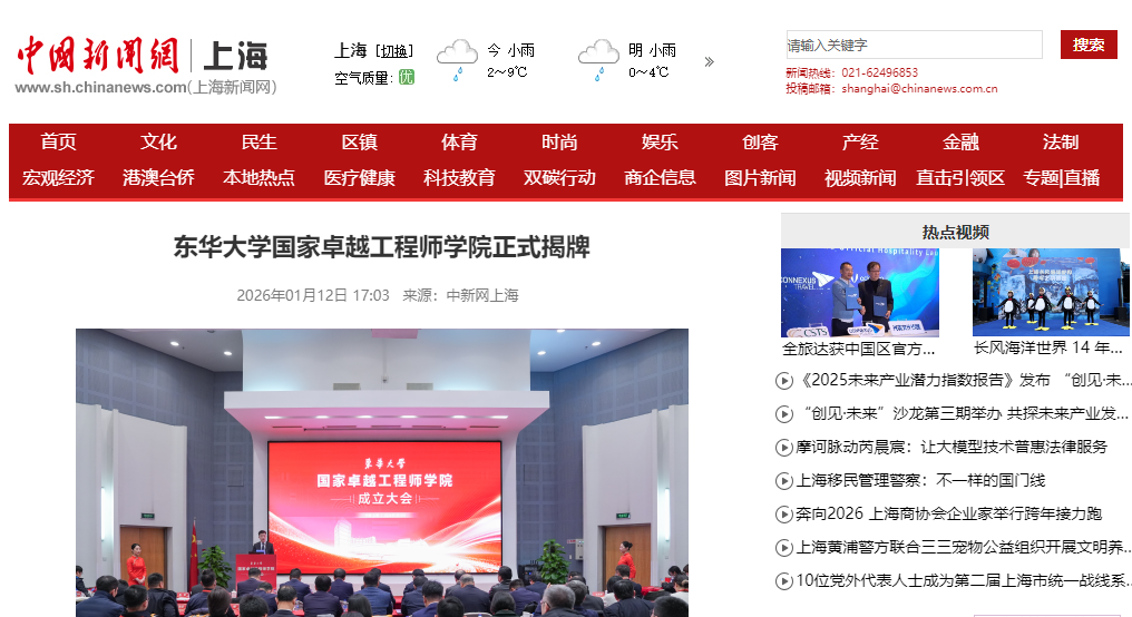 作为高等教育“国家队”,东华大学始终坚持服务国家重大需求和产业行业转型发展,形成了产教融合的鲜明办学特色。此次国家卓越工程师学院揭牌,是学校深入落实教育科技人才一体化发展的重要举措。面向未来,东华大学国家卓越工程师学院将胸怀“国之大者”,坚持学科交叉、产教融合、国际联通,依托上海及长三角区位与产业优势,不断拓展与战略行业、国际机构合作,着力培养“爱党报国、敬业奉献、技术卓越”、善于解决复杂工程问题的卓越工程师,建设成为特色鲜明、引领行业的国家级人才培养高地,为推进中国式现代化贡献东华力量。(时间:2026年01月12日 来源:中新网 作者:刘远康 许婧)