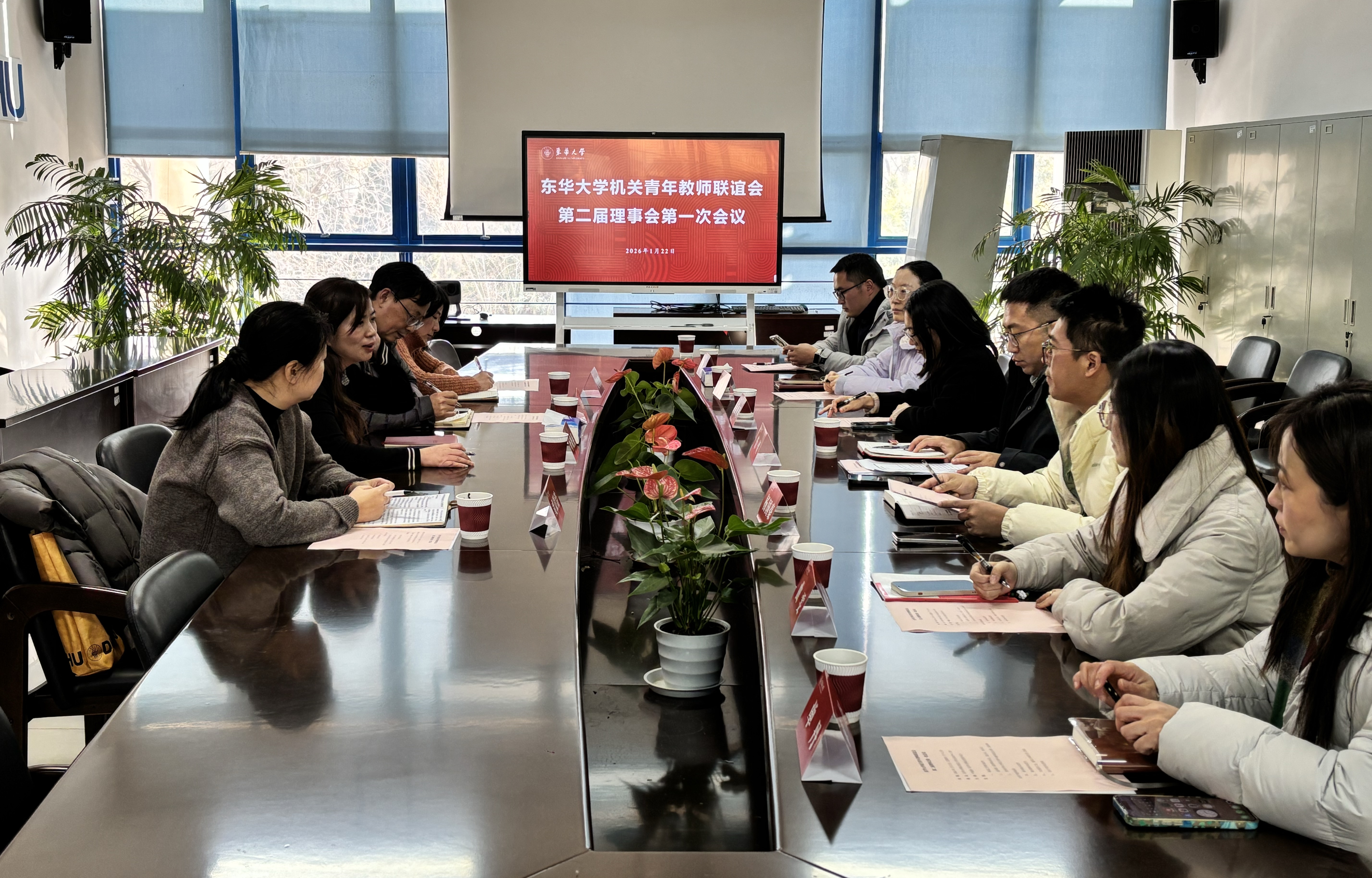 1月22日,我校机关青年教师联谊会第二届理事会第一次会议在松江校区举行。机关党委书记叶晓燕、机关工会主席张海生、党委教师工作部副部长虞晨洁、财务处副处长姜晓璐,第二届理事会成员和第一届理事代表共同参加。会议由叶晓燕主持。