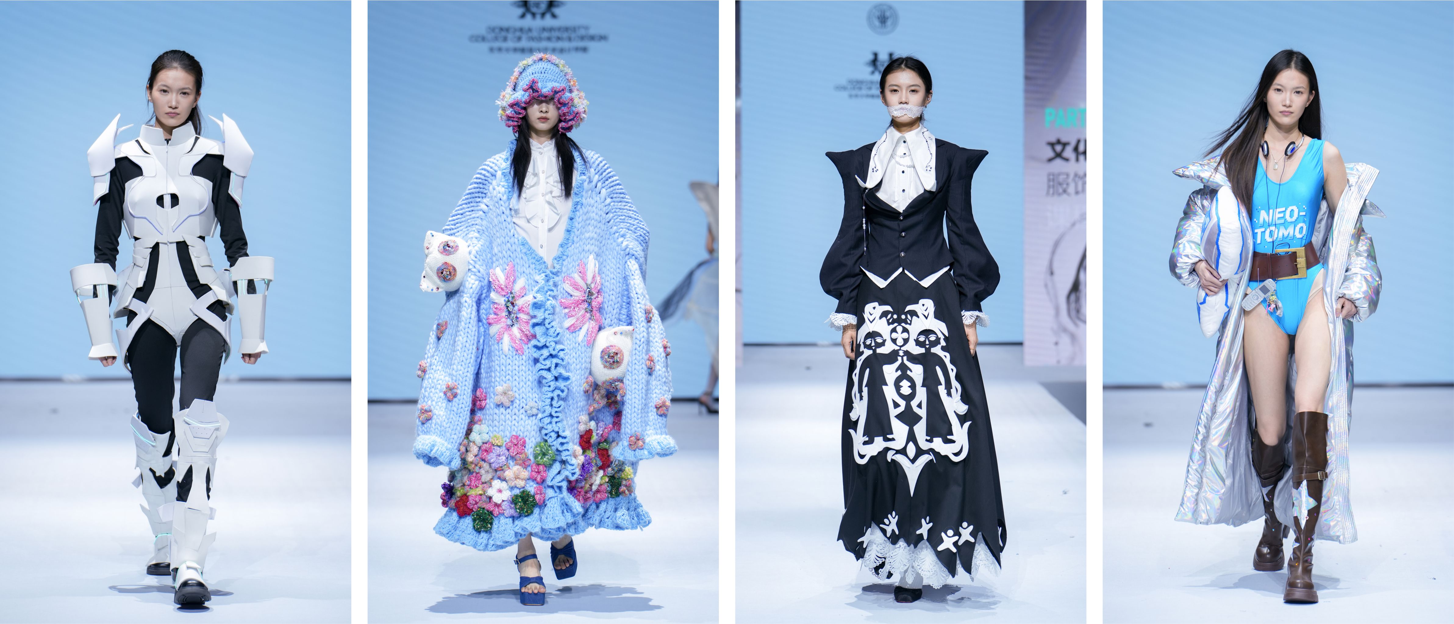 近日,“东华·服装设计创意集成周”在延安路校区举办,通过4场动态秀与1场静态展集中展示服装与艺术设计学院各年级学生设计作品近千件。作品在科技时尚、可持续设计、非遗再生、材料工艺等多维度展开深度探索,体现了东华设计教育的前瞻性与实践性。