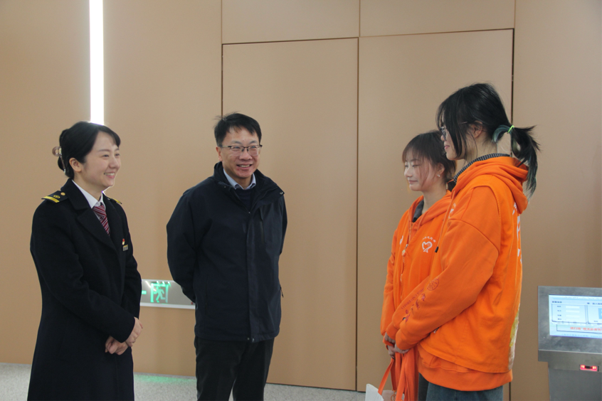 在人流如潮的候车大厅,李成龙与志愿者们展开深入交流,对同学们迎难而上的精神与积极投身志愿服务的主动作为给予肯定。他表示,2026年是长三角一体化发展纵深推进的关键之年,上海松江站作为沪苏湖高铁全面贯通后的重要枢纽,客流量持续攀升、服务压力显著加大,同学们以饱满的热情投身于客流引导、重点旅客帮扶、智能设备协助、应急突发处置等新型服务场景,用青春智慧提升了枢纽运行效率与旅客体验温度,生动诠释了新时代青年的责任担当与使命自觉。