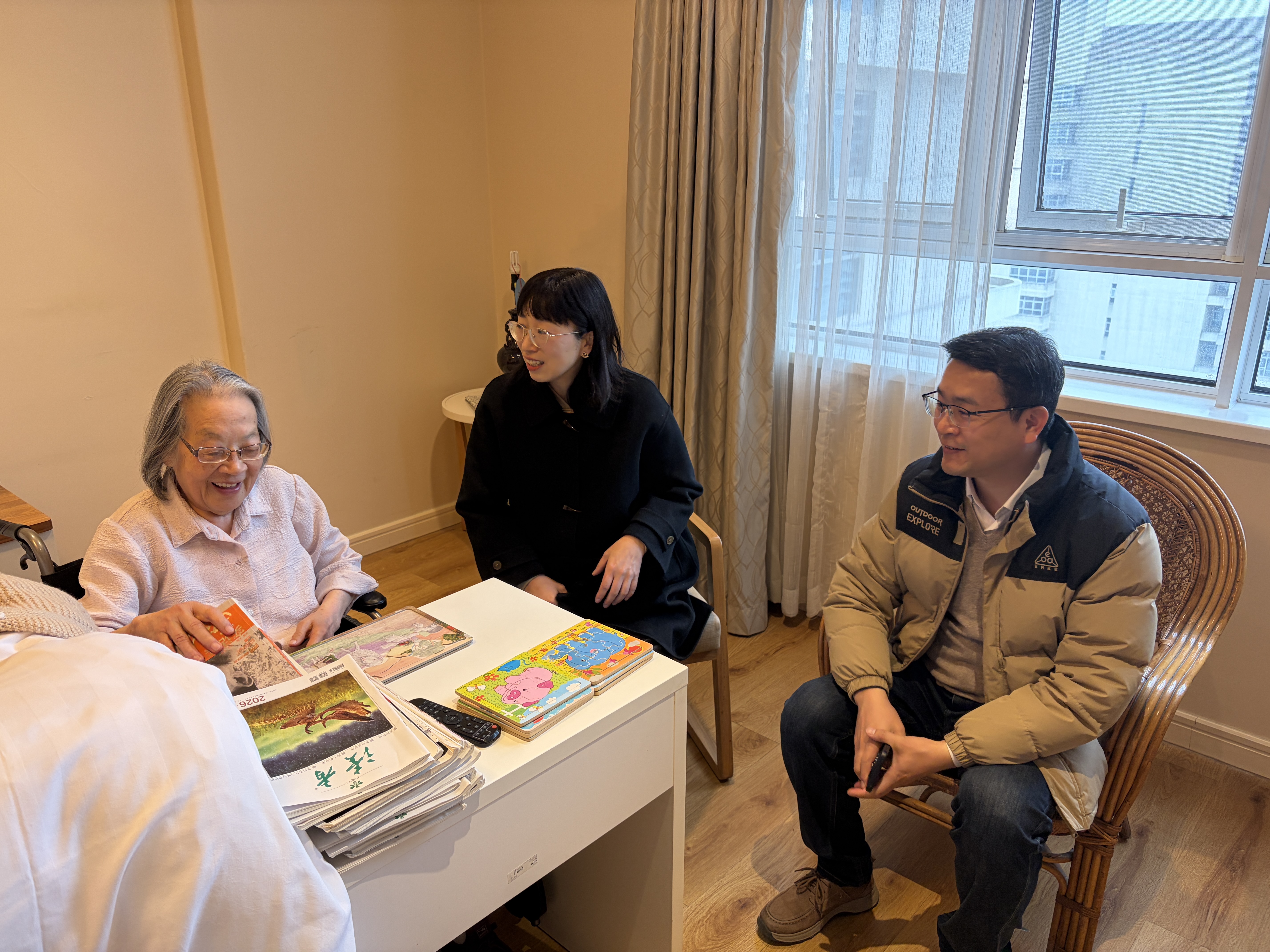 走访期间,慰问组深入老同志家中或养老院,与他们促膝谈心,悉心询问身体近况与生活需求,认真倾听他们对学院工作的意见建议。学院党委书记严军前往养老院看望93岁高龄的李璋芬老师;院长武培怡先后慰问88岁的陈全伦老师和87岁的戴瑾瑾老师;副院长毛志平走访85岁的袁琴华老师;党委委员罗艳慰问91岁的陈水林老师和86岁的华载文老师。各系办负责人、工会委员及学院关工委老师也一同参与慰问,将学院的温暖与敬意送到每位老同志心中。