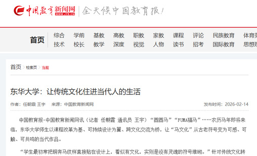 中国教育报-中国教育新闻网讯(记者 任朝霞 通讯员 王宇)“圆圆马”“FUMA福马”……农历马年即将来临,东华大学师生以课程改革为基、可持续设计为翼、跨文化交流为桥,让“马文化”从古老符号变为可感、可触、可共鸣的当代作品。