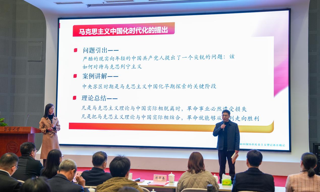 张华明、李妍、王淑芳、贺羡、张乂凡、张宪丽等思政课教师与校外思政实践教学导师,分别围绕《党史》《毛泽东思想和中国特色社会主义理论体系概论》《思想道德与法治》《形势与政策》《习近平新时代中国特色社会主义思想概论》等课程,联合开展双师同讲思政课专题教学展示与授课。