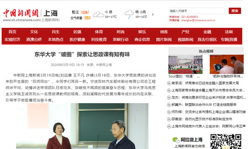 今年,东华大学马克思主义学院将迎来成立十周年。近年来,马克思主义学院坚持将思政课建设与党的创新理论武装同步推进,不断深化思政课改革创新,着重从新时代伟大变革中凝练教学案例,将思政课堂有效延伸到中国式现代化建设的前沿阵地,连续推出“人民城市”“千万工程”“两山理念”等多堂思政大课,推动思政课实践与专业实践、社会实践有机联动,在知行合一中不断提升思政引领力。面向“十五五”,学校将持续深化思政课实践教学改革,深入推动“实践教学+案例教学”融合互促,进一步打通思政课堂和社会课堂,打造更多具有东华特色的思政“金课”,不断提升思政课育人实效,高质量落实新时代立德树人工程。(时间:2026年03月19日 来源:中新网 作者:刘远康 王不凡 许婧)