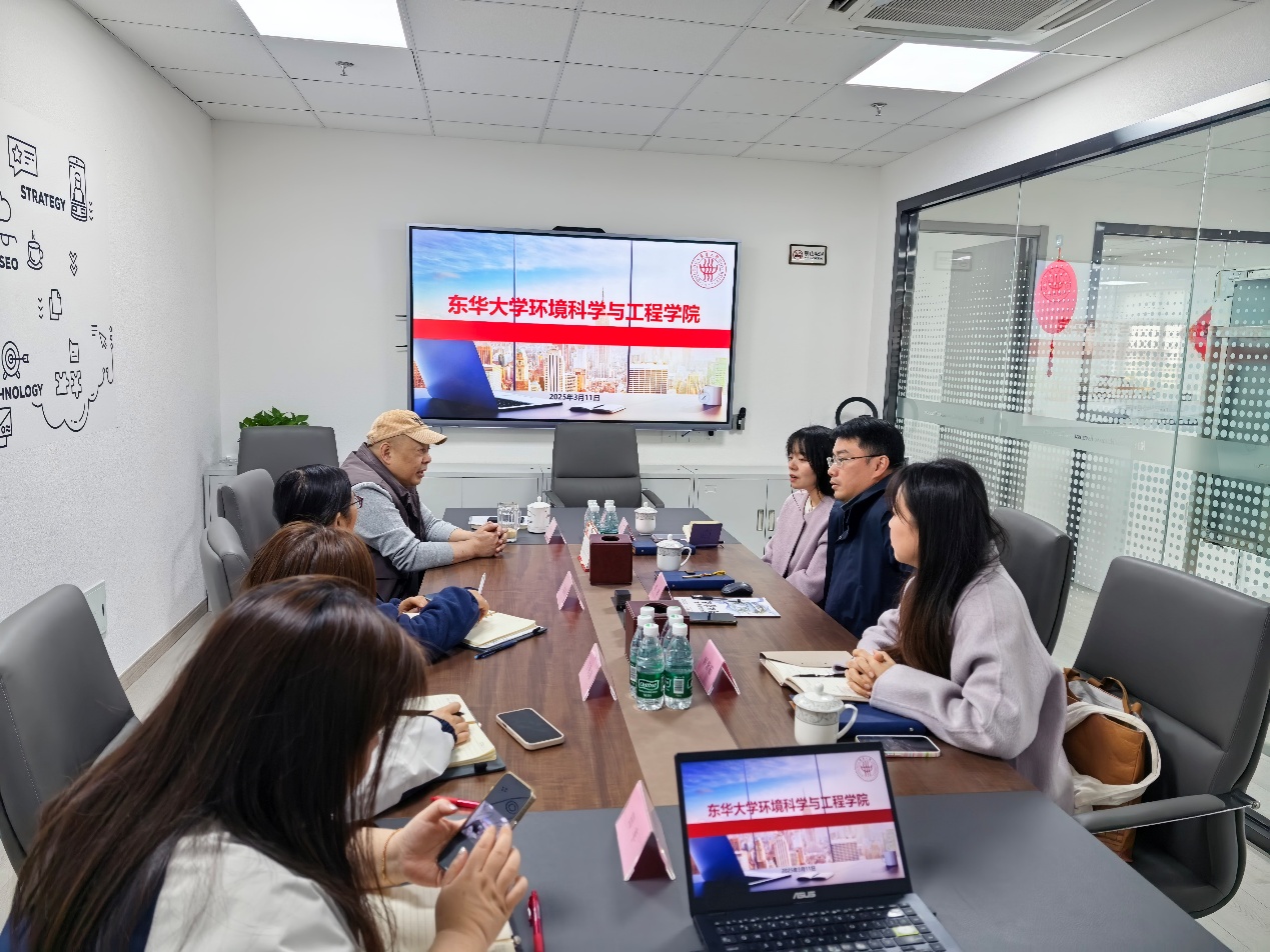 在上海百硕环保科技有限公司,双方重点就环保行业发展趋势、企业人才知识能力需求以及学生实践能力培养等议题交换了意见。企业方高度认可东华环境学院毕业生的专业素养,表示愿在专场招聘、实习实训等方面提供更多支持。高品介绍了学院近年来在学科建设与科研方面的成果,期待与企业实现技术攻关上的优势互补。