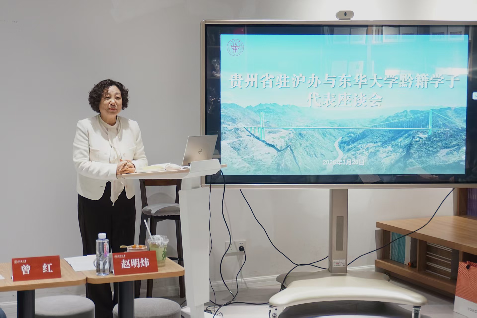 曾红在讲话中肯定了学校与贵州在非遗传承、纺织产业、教育帮扶等领域的合作成果,并围绕纺织产业社会实践、民族非遗活化弘扬、文化符号传承转化等方面提出校地合作新方向。她勉励贵州学子将个人成长融入贵州发展,共同讲好贵州故事。张庆介绍贵州纺织产业发展情况。黄芳介绍贵州省驻沪团工委、高校春晖社建设情况,以及支持贵州籍大学生创新创业有关制度安排。