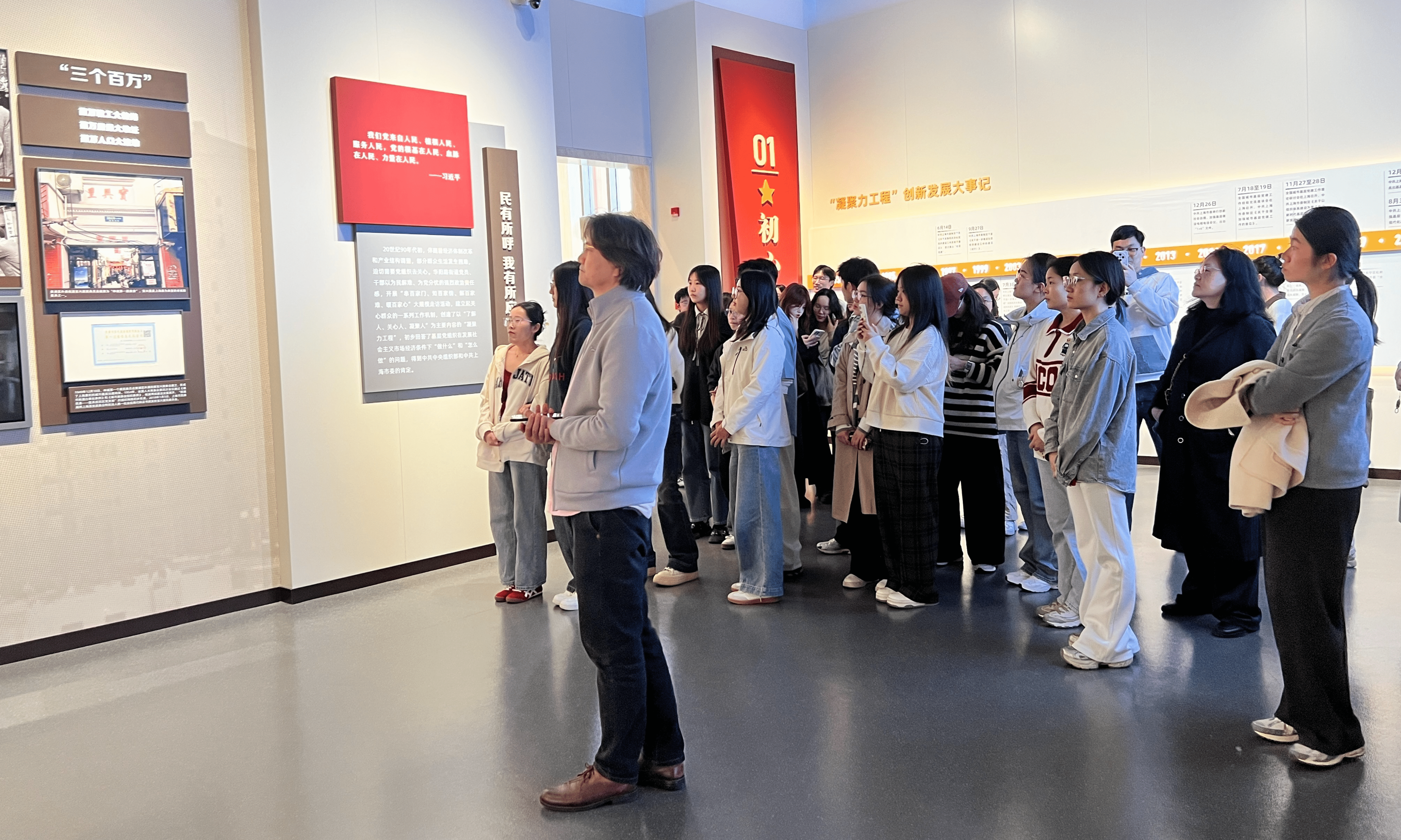 为深入学习贯彻习近平总书记关于树立和践行正确政绩观的重要论述,教育引导师生党员深刻理解“为民造福是最大政绩”的核心要义,4月7日,人文学院师生党员一行前往上海凝聚力工程博物馆参观学习,沉浸式体悟上海城市基层党建的生动实践,汲取奋进力量。
