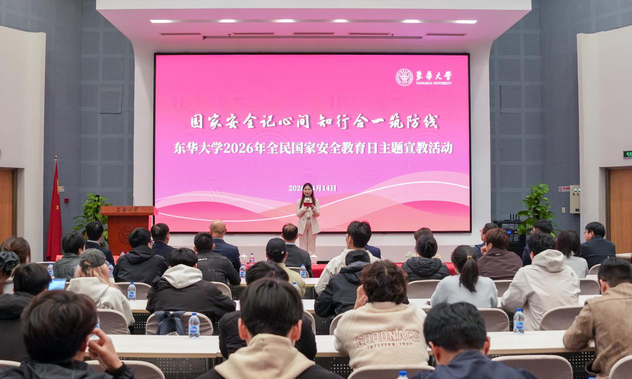 为深入学习贯彻总体国家安全观,切实提升全校师生国家安全意识,4月14日,在第11个全民国家安全教育日到来之际,东华大学举行“国家安全记心间 知行合一筑防线”2026年全民国家安全教育日主题宣教活动。党委副书记李成龙、副校长阎林平出席活动,国家安全机关相关专家莅临指导,学校相关职能部门负责人及师生代表共同参与。