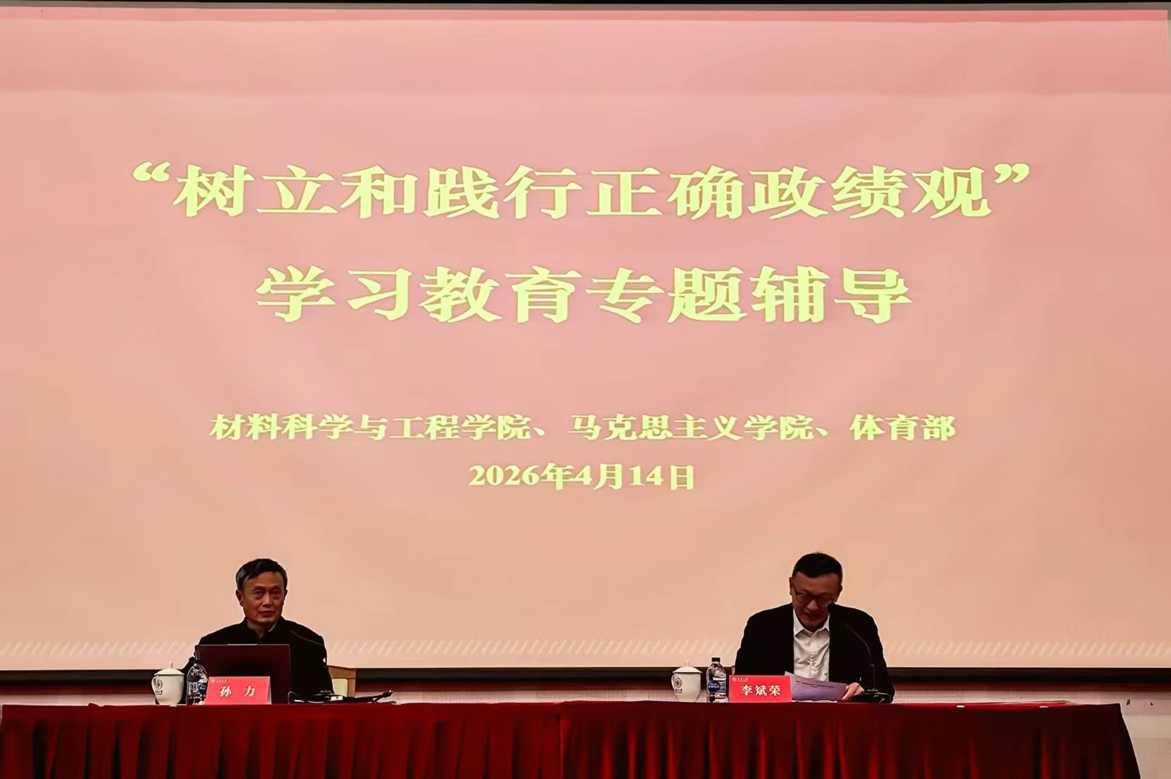 材料科学与工程学院党委、马克思主义学院党委、体育部党总支联合举办树立和践行正确政绩观学习教育专题辅导报告会