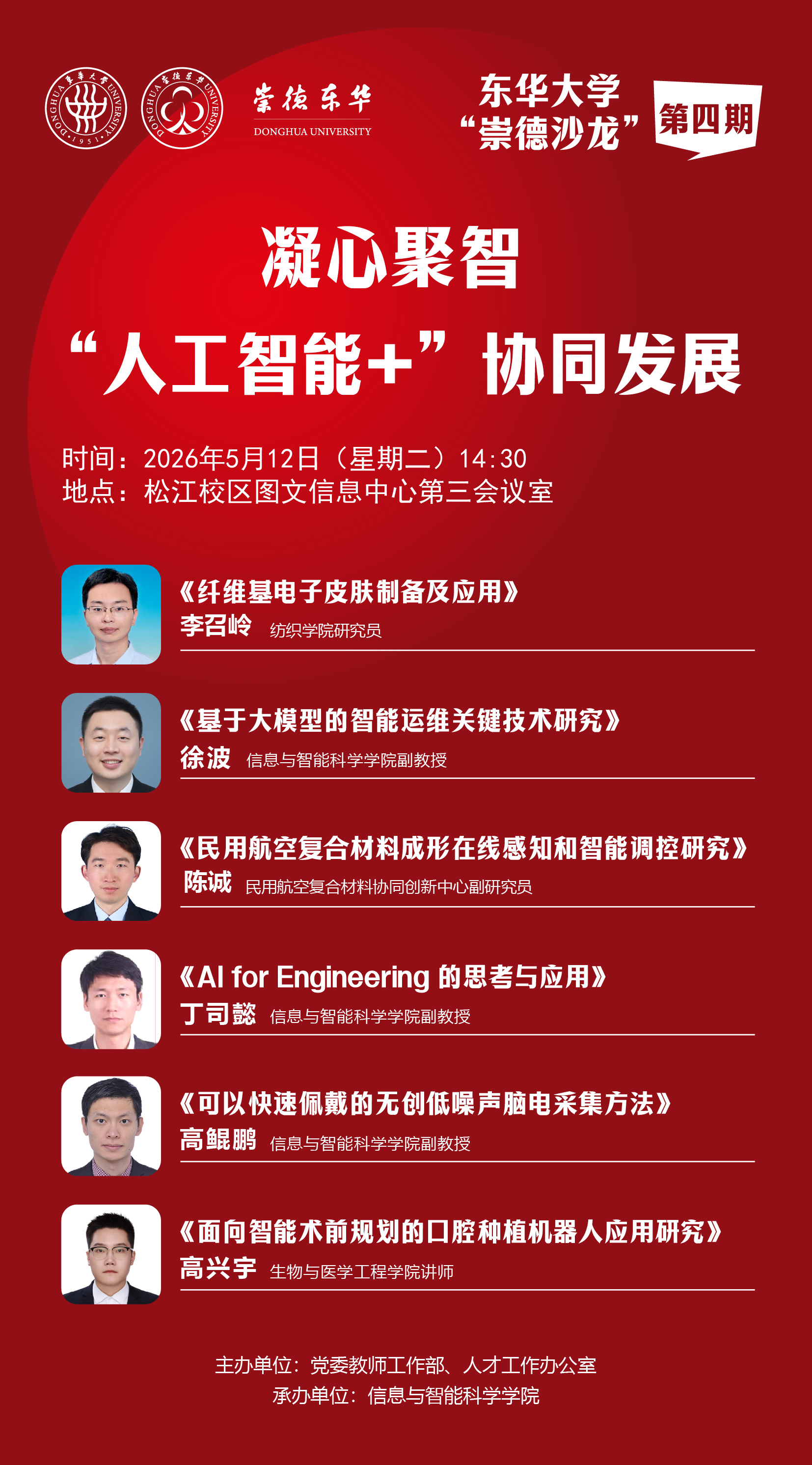 当前,人工智能与多学科深度交叉融合已成为推动科技创新的重要引擎,更是赋能产业升级、服务国家战略与上海先导产业发展的关键支撑。教师作为立德树人与科技创新的主力军,既要紧跟前沿,锤炼交叉融合与协同创新能力;更需坚守育人初心与师者匠心,把教学科研融入强国建设与教育强国大局。