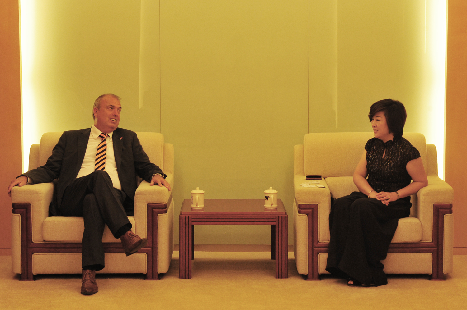 会见中,刘春红代表学校对代表团到访表示欢迎,介绍了我校现状、学科特色及国际化办学发展情况。范德维尔登及埃利克•德瑞德分别介绍了两市高等教育情况,并就推动双方在物流、艺术、旅游管理及纺织材料等学科方面的合作与我校进行探讨。