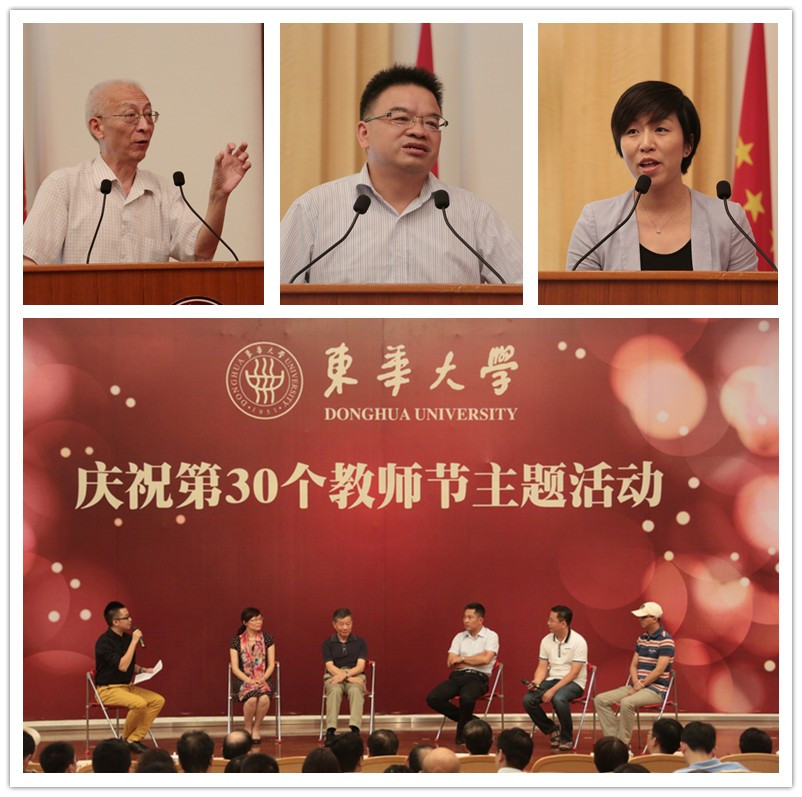 理学院退休教师陈孩未、信息学院院长丁永生与管理学院辅导员江娥作交流发言,与大家分享了教书育人、教研相长、关爱学生的体会。陈孩未畅谈教书育人体会时表示,教书育人其乐无穷,“东华的学生很可爱,为东华的学生付出,其乐无穷。”丁永生谈及如何将创新思维传递给学生时感慨道:“无论是教学或科研创新,坚持‘理清思路、精心规划、稳步实施’的三部曲,一定能达到期望的效果。同时,创新的过程需要勤奋,能耐得住寂寞、抵得住诱惑。”江娥言及做学生工作的心得时,动情地说:“我喜欢和学生青春相伴的感觉,他们给了我实现自身价值的机会,我愿意用爱为他们护航,用心陪伴他们成长”。