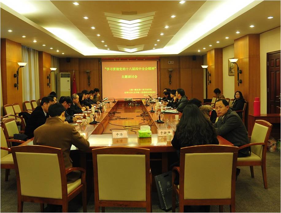 12月5日,由上海高校“毛泽东思想和中国特色社会主义理论体系概论”课程(简称“概论”课)教学协作组(以下简称“协作组”)主办、我校人文学院(思想政治理论部)承办的“学习贯彻党的十八届四中全会精神”主题研讨会在延安路校区举行。校党委副书记刘淑慧、上海市德育中心副主任宗爱东、协作组组长陈锡喜教授、协作组总督导胡涵锦教授出席研讨会。