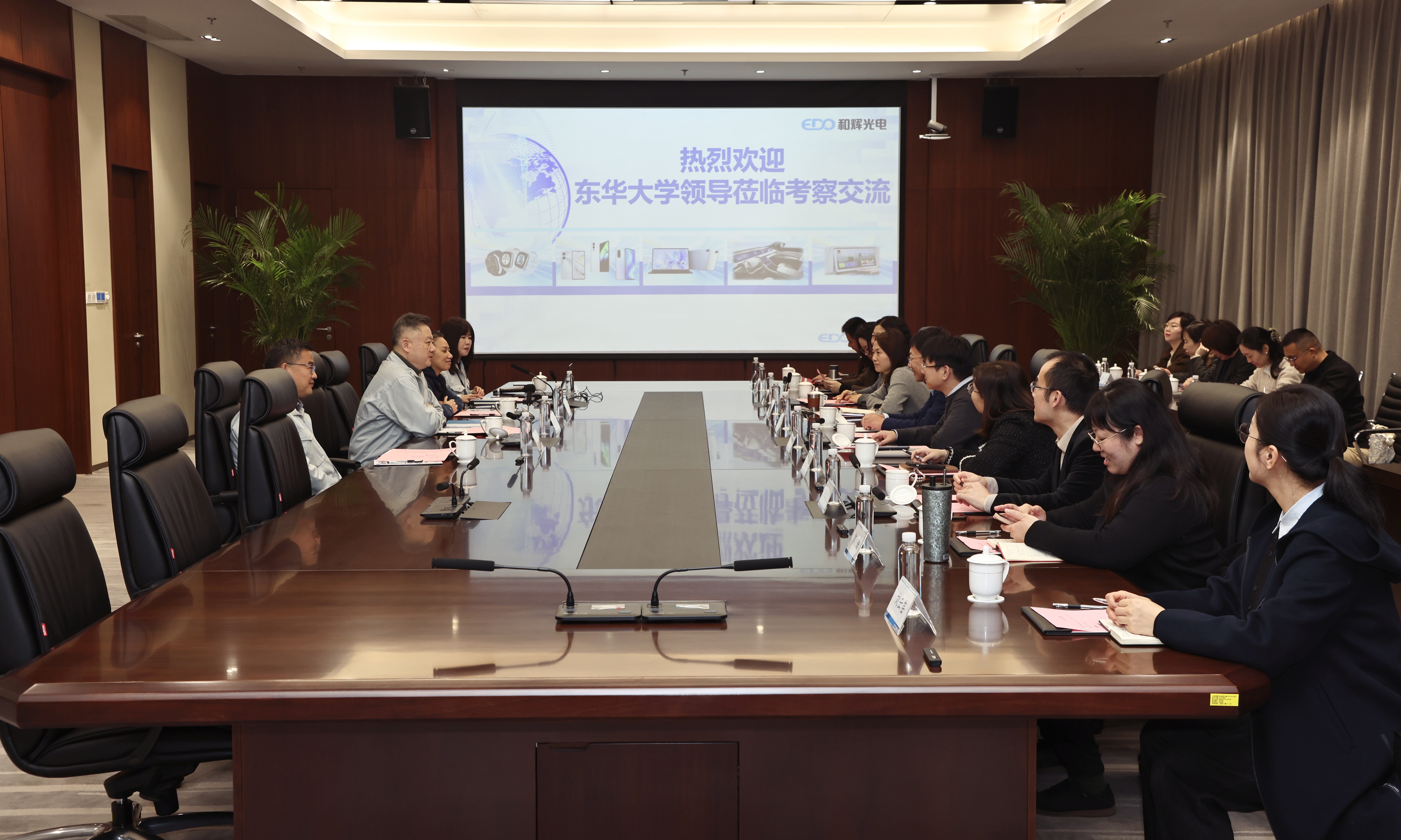 1月16日,李成龙一行走访上海和辉光电股份有限公司。李成龙认真听取了公司党委书记唐均君关于企业发展与创新成果的介绍,并对企业在技术创新与产业建设方面取得的成就给予肯定。座谈交流中,李成龙系统介绍了学校在材料科学、电子信息、智能制造等相关学科的战略布局,并从共建实习实践基地、开展联合科研攻关、推动人才双向交流等方面提出合作构想,希望与和辉光电携手打造产学研深度融合、人才培养与科技研发协同并进的合作共同体。